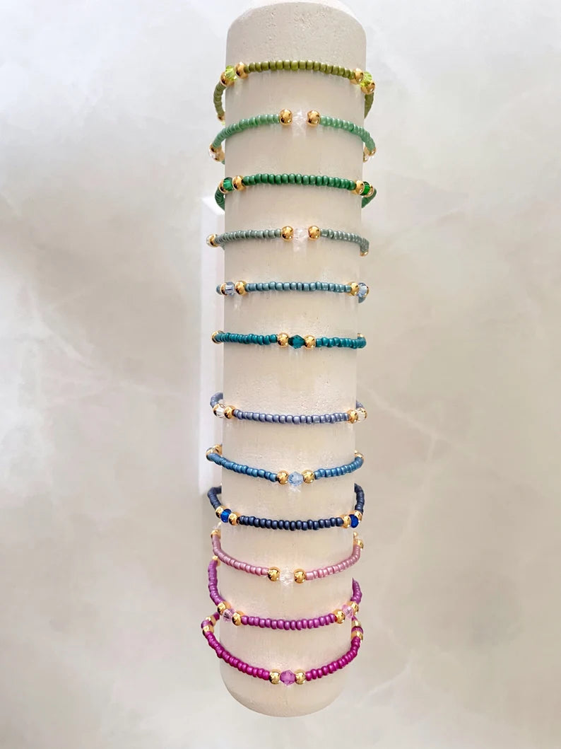 - one beaded bracelet made with 4mm 14k gold plated beads, 2mm seed beads and 4mm crystal accent beads