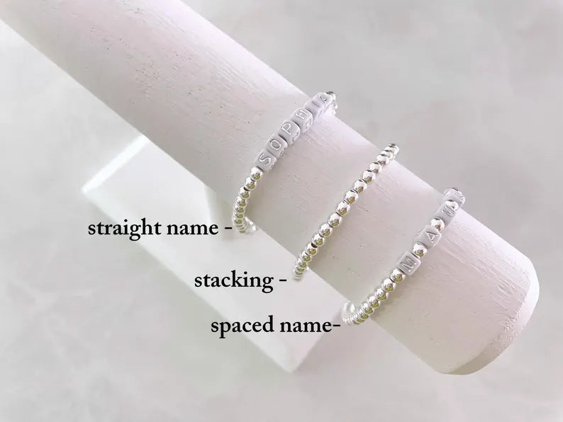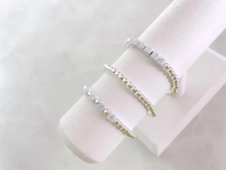Square Letter Bead Silver Name Bracelet
