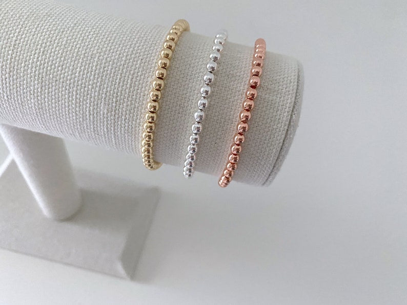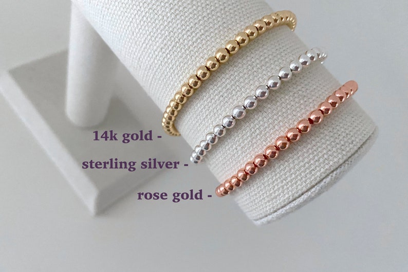 - one 4mm 14k gold, rose gold or sterling silver plated stacking bracelets