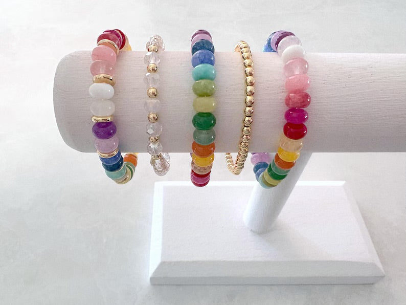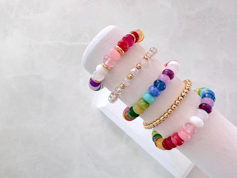 - Roll bracelets gently when putting on/taking off. Avoid over stretching.