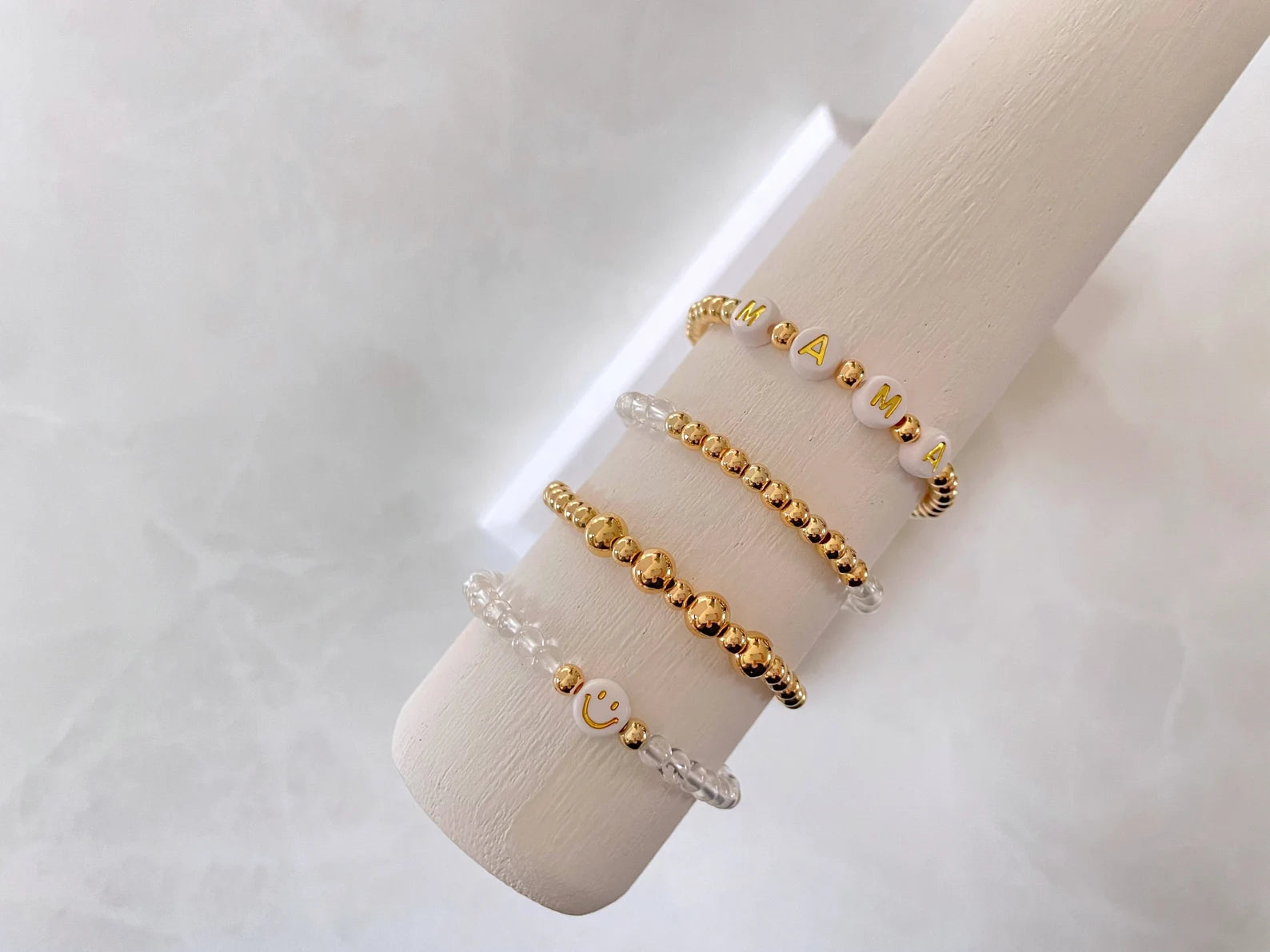 - Roll bracelets gently when putting on/taking off. Avoid over stretching.