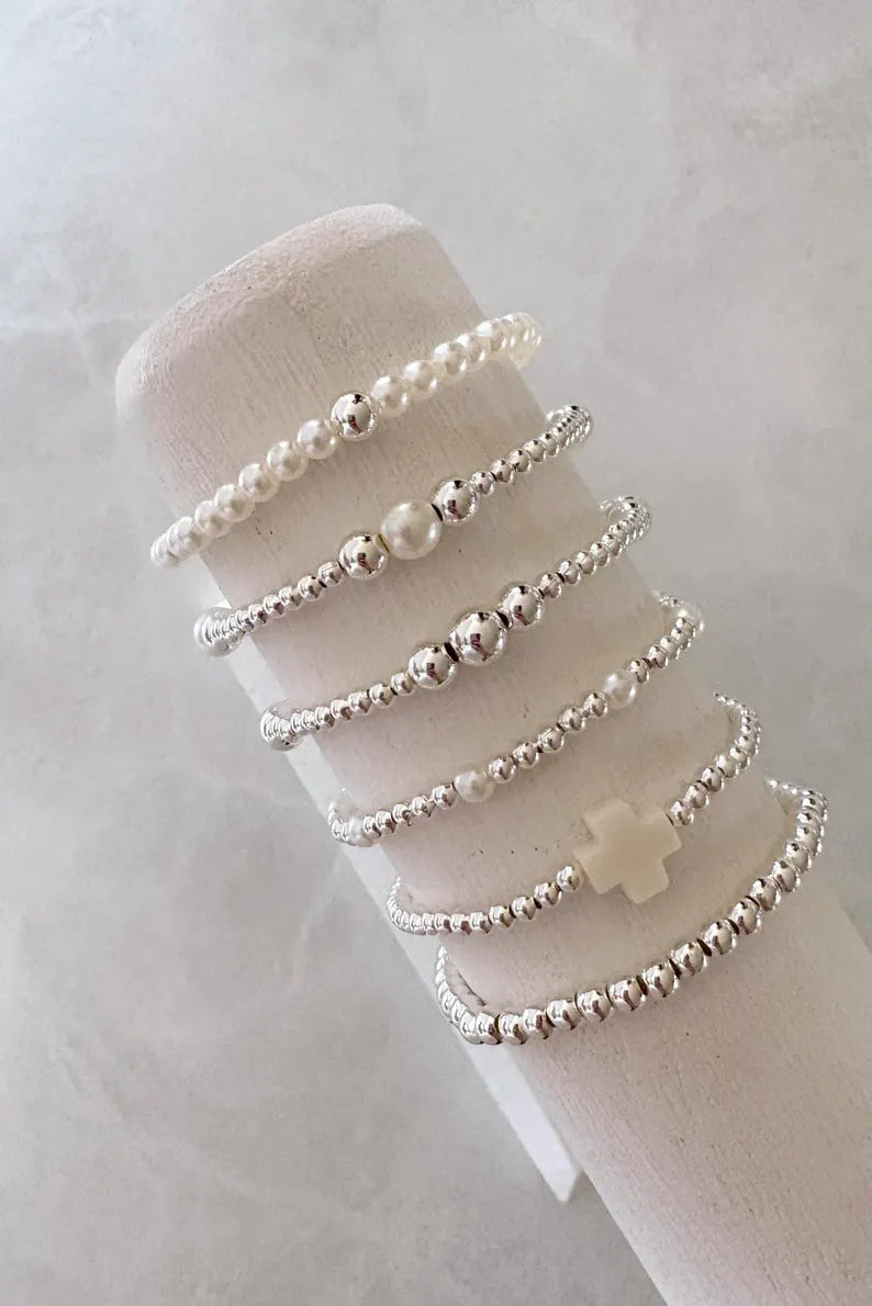 - one sterling silver beaded bracelet with pearl accent beads